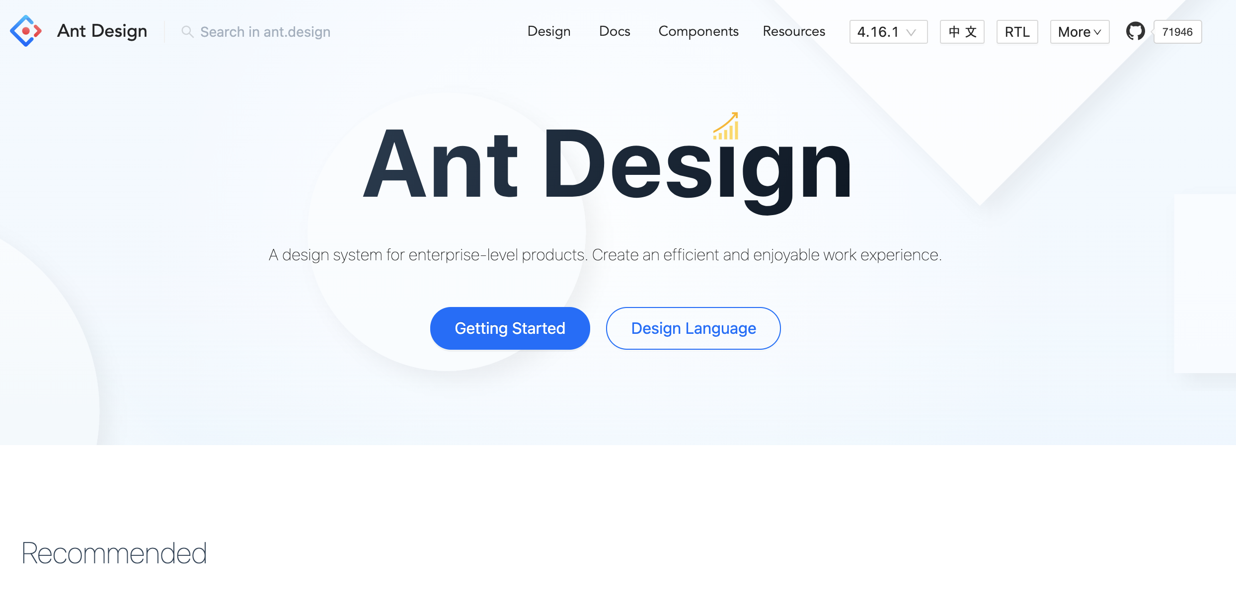 Ant Design은 리엑트 라이브러리를 설계하는 중국 기업으로 이를 사용하는 기업으로 텐센트, 알리바바, 바이두 등이 대표적이다. 라이브러리는 60개 이상의 컴포넌트가 있고 예측 가능한 정적 유형을 가진 TypeScript로 작성됩니다.