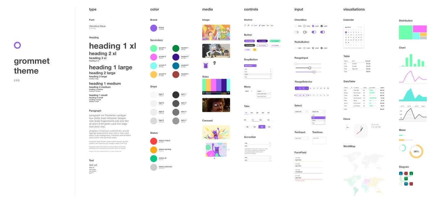 Gromet은 응답성, 접근성 및 모바일 우선 웹 프로젝트를 위해 설계된 구성요소 라이브러리입니다. 그것은 atomic 설계 방법을 수용하고 키보드 탐색, 화면 판독기 태그 등을 허용한다. 심지어 svg 아이콘 목록도 있다.