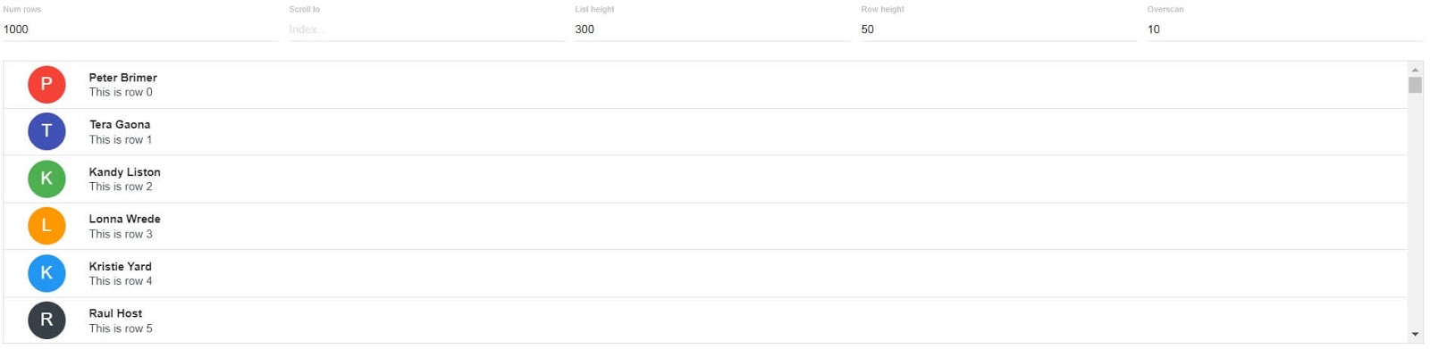 React Virtualized는 대규모 목록과 표 형식의 데이터를 효율적으로 렌더링 하는 좁고 구체적인 목적을 제공한다는 점에서 이 소개 페이지에서 독립적입니다. 이 라이브러리는 단일 테이블에 여러 열을 렌더링 하려고 할 때 유용합니다.