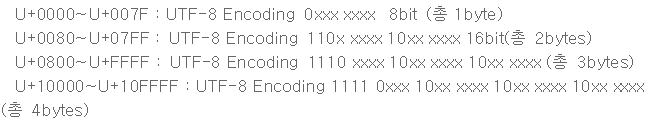 UTF-8은 위 규칙에 따라서 유니코드 문자를 인코딩 합니다.